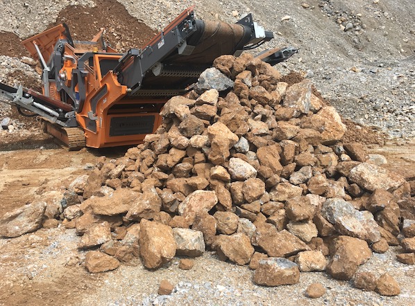 在我国南部边陲某废弃金矿,有 100 多万吨废矿石闲置逾十年,如今使用浦塔菲尔移动式重型筛分机5000CT 将废弃矿石筛分出 0-40mm 40-100mm 、和 100mm 以上三种规格的建筑石料,变废为宝,直接为客户带来每吨近30 元的利润。配合一台 CAT 320 的挖掘机,每小时能筛分废矿石 250-300 吨,后期结合浦塔菲尔移动式反击式破碎机与移动洗砂设备,将进一步挖掘原料价值,进行附加值更高的生产模式。